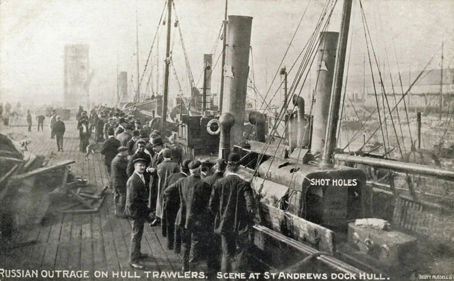 Here are two versions of the same scene, showing the damage to the trawlers in Hull.