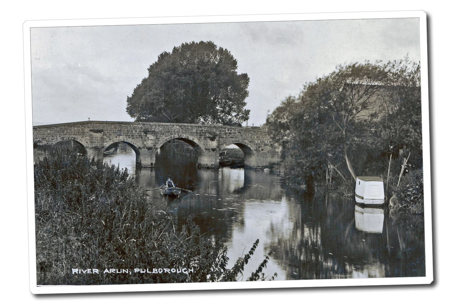 This card, from an unknown publisher, was posted in Hordle, Lymington in 1953 and sent to Mrs. H. Hanks, The Nutshell, New Milton. It was possibly photographed some time earlier but shows that at least a couple of craft were using the river, now an unusual sight.