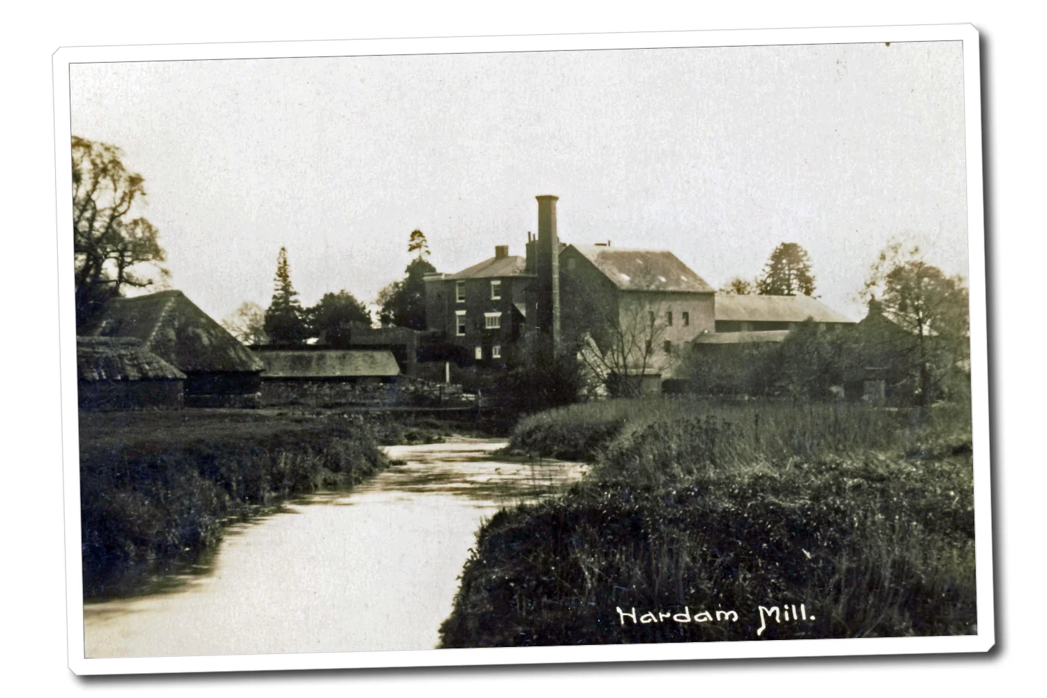 Hardham Mill was situated just above the junction of the River Rother with the Arun, about half a mile south of Stopham Bridge. The river was first penned back in 1785 to provide a head of water for the Arun Navigation in conjunction with Hardham lock. This head of water was later used for the mill, first built in 1827. Details of the mechanisms over the years can be found in Watermills of Sussex, Vol 2 by Stidder and Smith (2001). The mill was demolished in 1937 and the mill house was destroyed by a bomb in 1941.