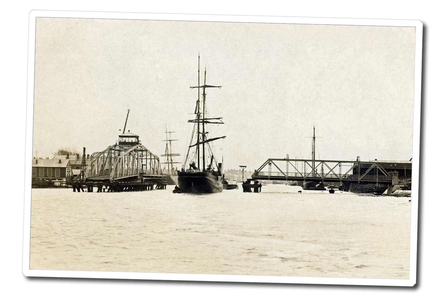 The Swing bridge remained in operation until March 1973, when it was replaced for vehicles by a new fixed bridge further upstream,. A retracting footbridge was eventually installed in place of the swing bridge some years later.